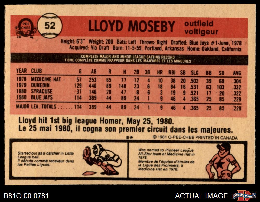1981 O-Pee-Chee #52 Lloyd Moseby 5 - EX