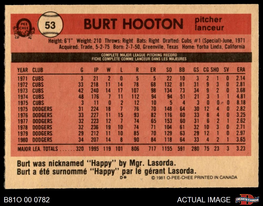 1981 O-Pee-Chee #53 Burt Hooton 5 - EX