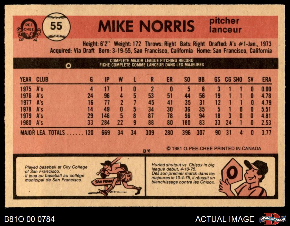 1981 O-Pee-Chee #55 Mike Norris 8 - NM/MT