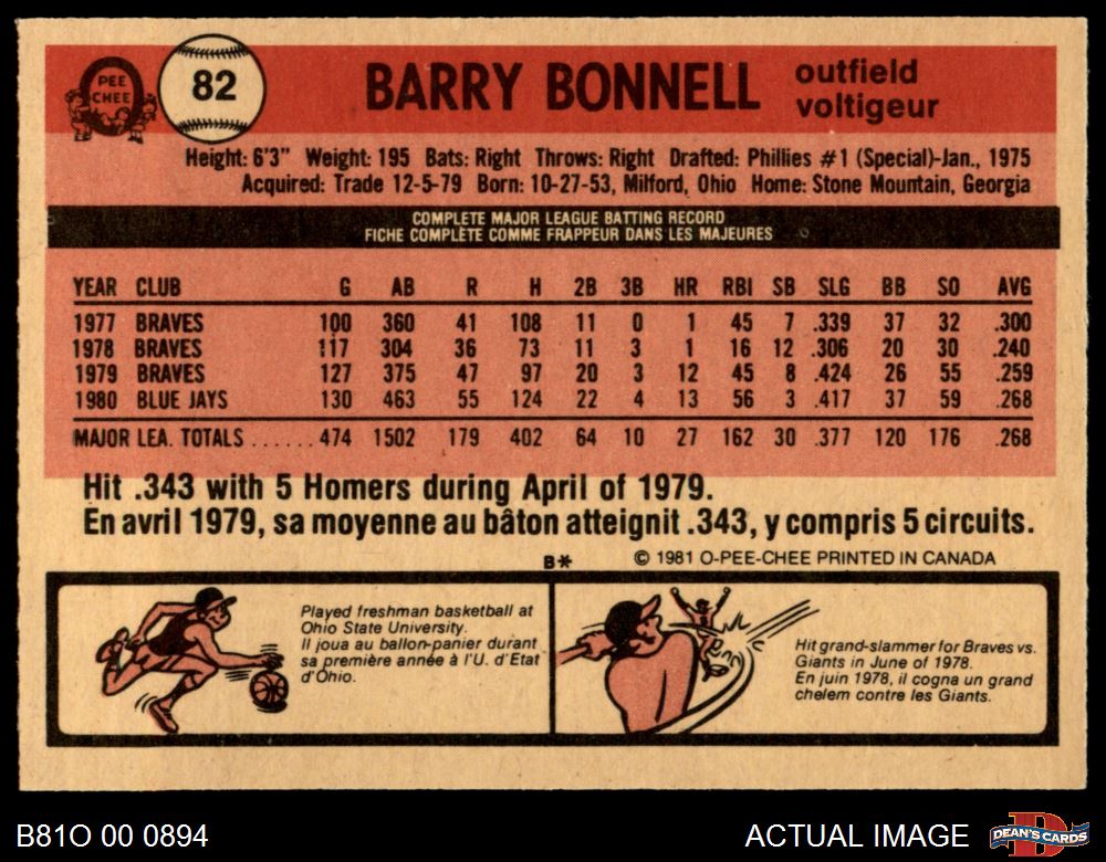 1981 O-Pee-Chee #82 Barry Bonnell