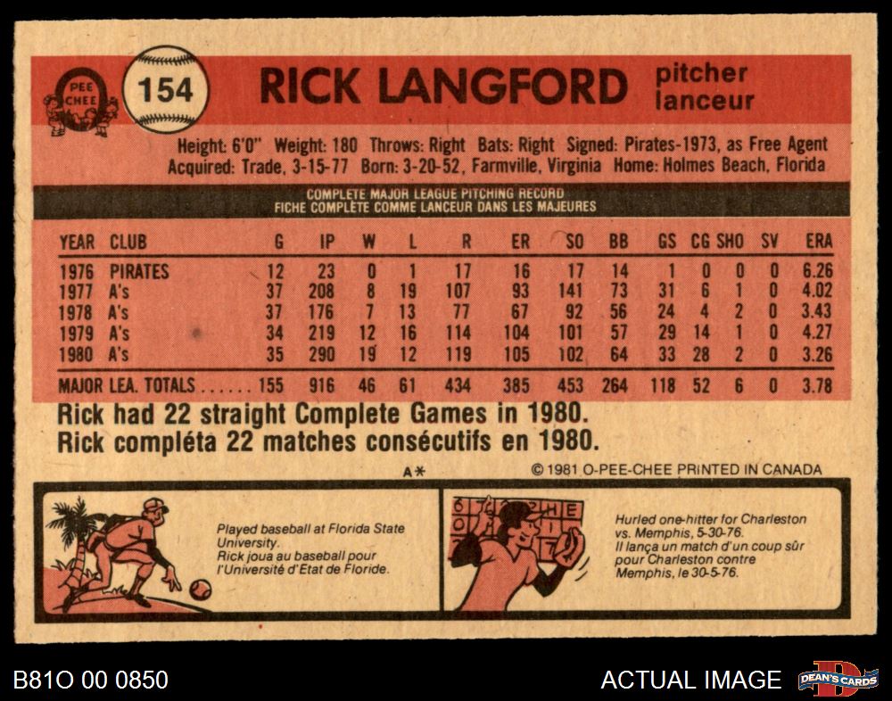 1981 O-Pee-Chee #154 Rick Langford 7 - NM
