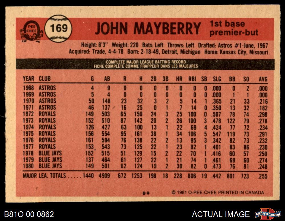 1981 O-Pee-Chee #169 John Mayberry 7 - NM