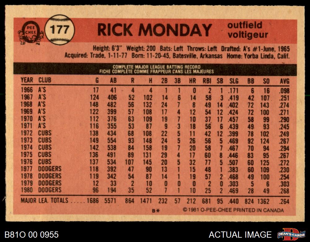 1981 O-Pee-Chee #177 Rick Monday 7.5 - NM+