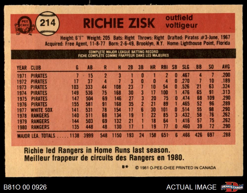 1981 O-Pee-Chee #214 Richie Zisk 6 - EX/MT
