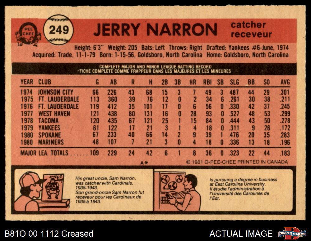 1981 O-Pee-Chee #249 Jerry Narron 3 - VG