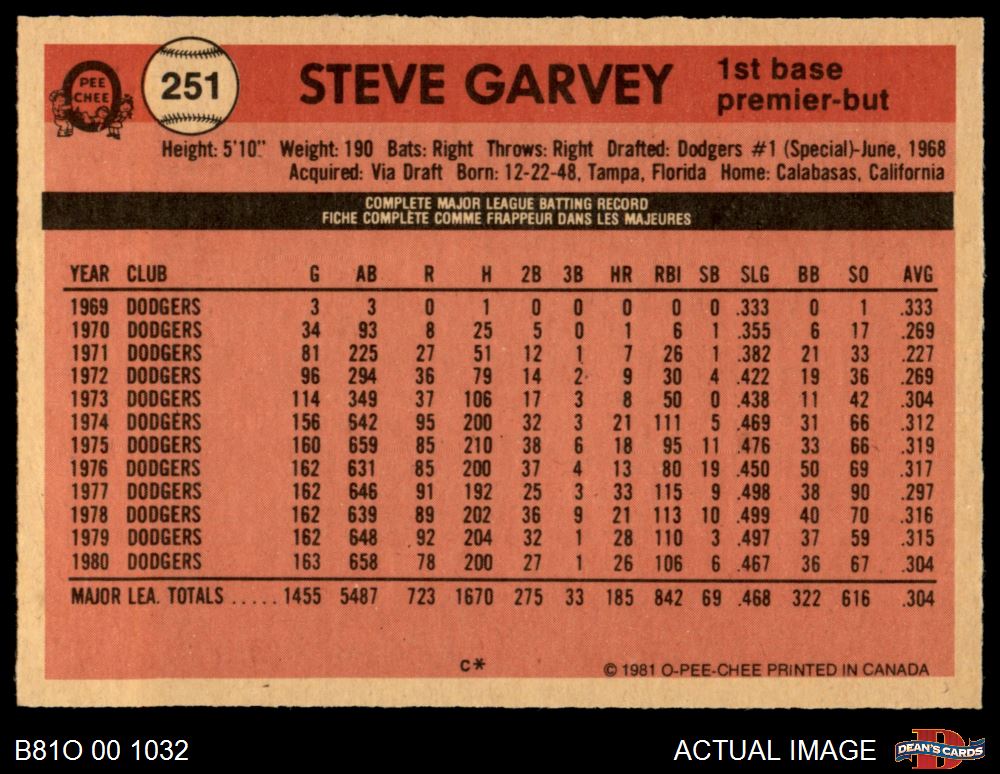 1981 O-Pee-Chee #251 - Steve Garvey All-Star Game 8 - NM/MT