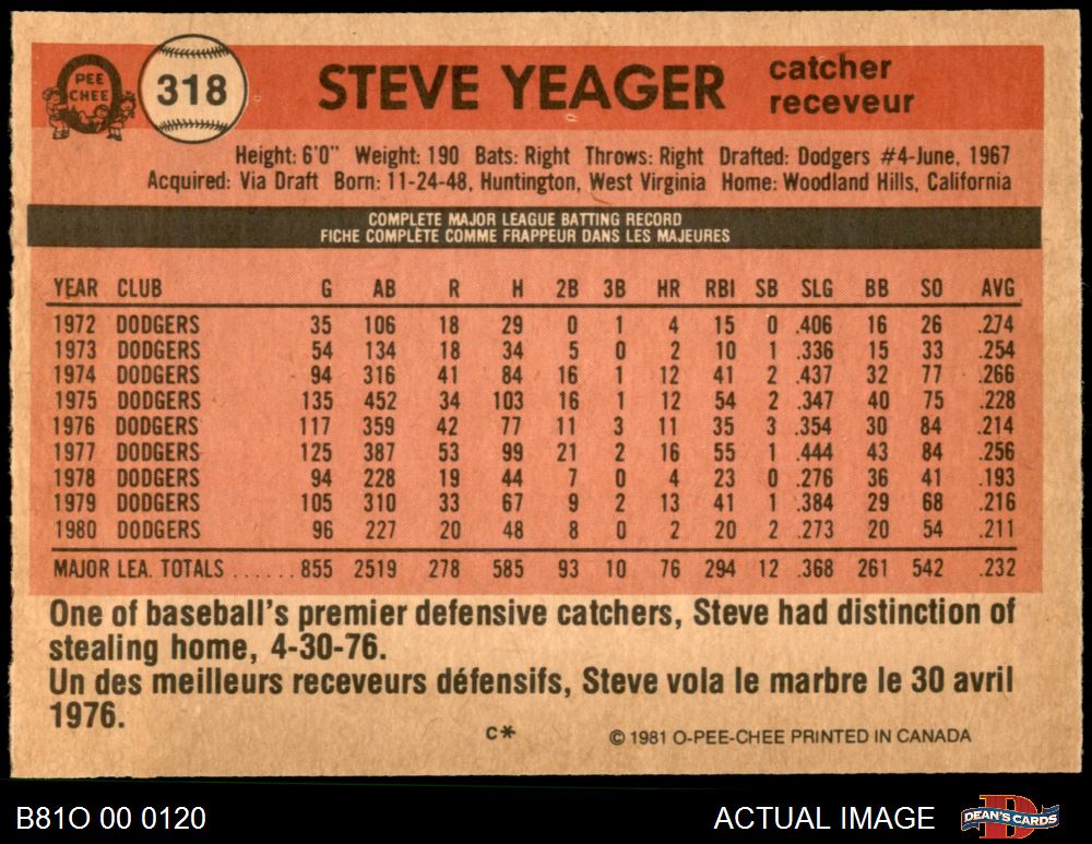 1981 O-Pee-Chee #318 Steve Yeager 4 - VG/EX