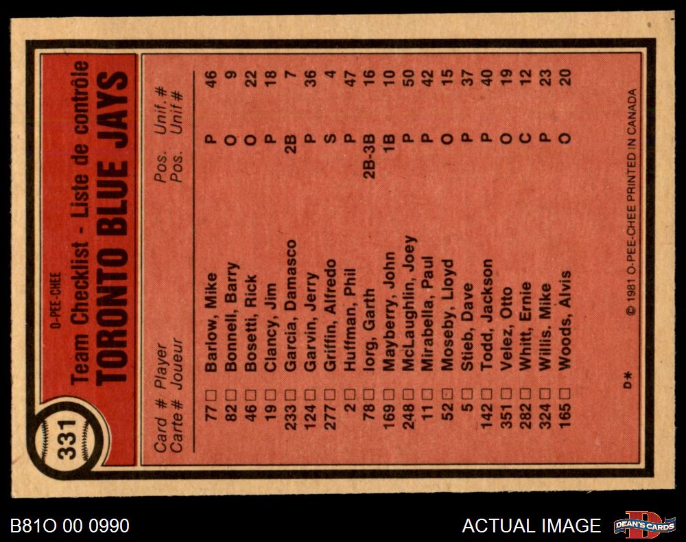 1981 O-Pee-Chee #331 Toronto Blue Jays - Bobby Mattick 8 - NM/MT