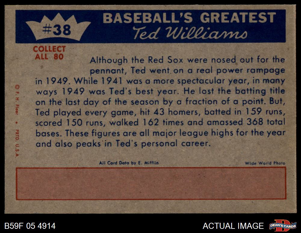 1959 Fleer #38 - Ted Williams Power Rampage 6 - EX/MT