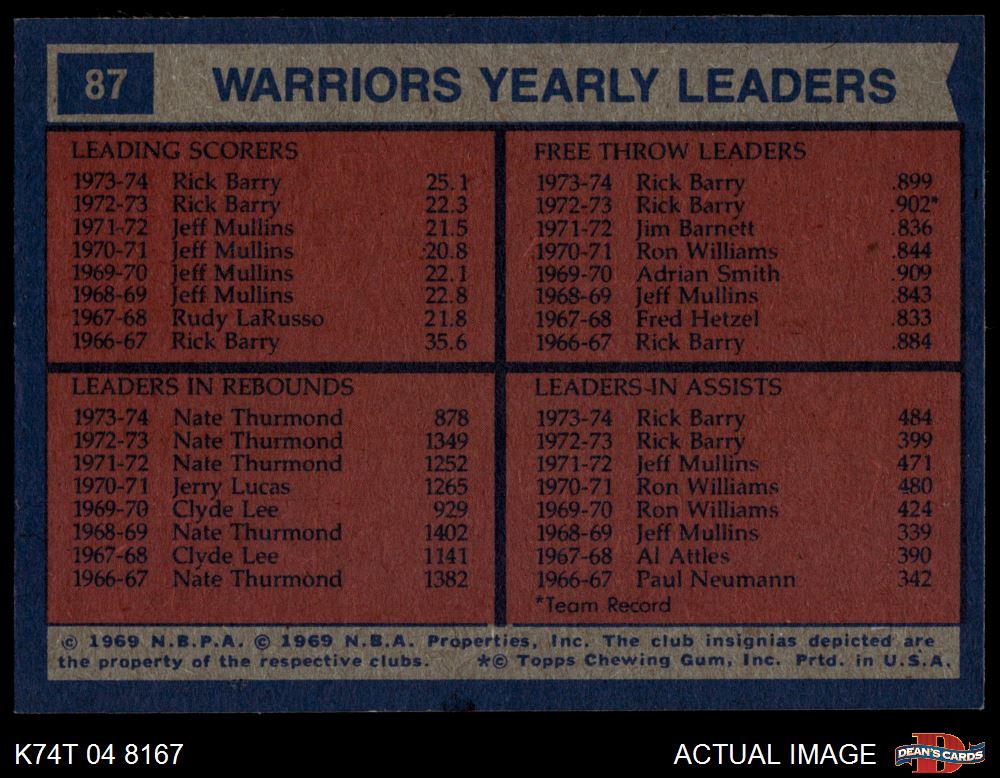 1974 Topps #87 - Rick Barry / Nate Thurmond Warriors Leaders 5 - EX