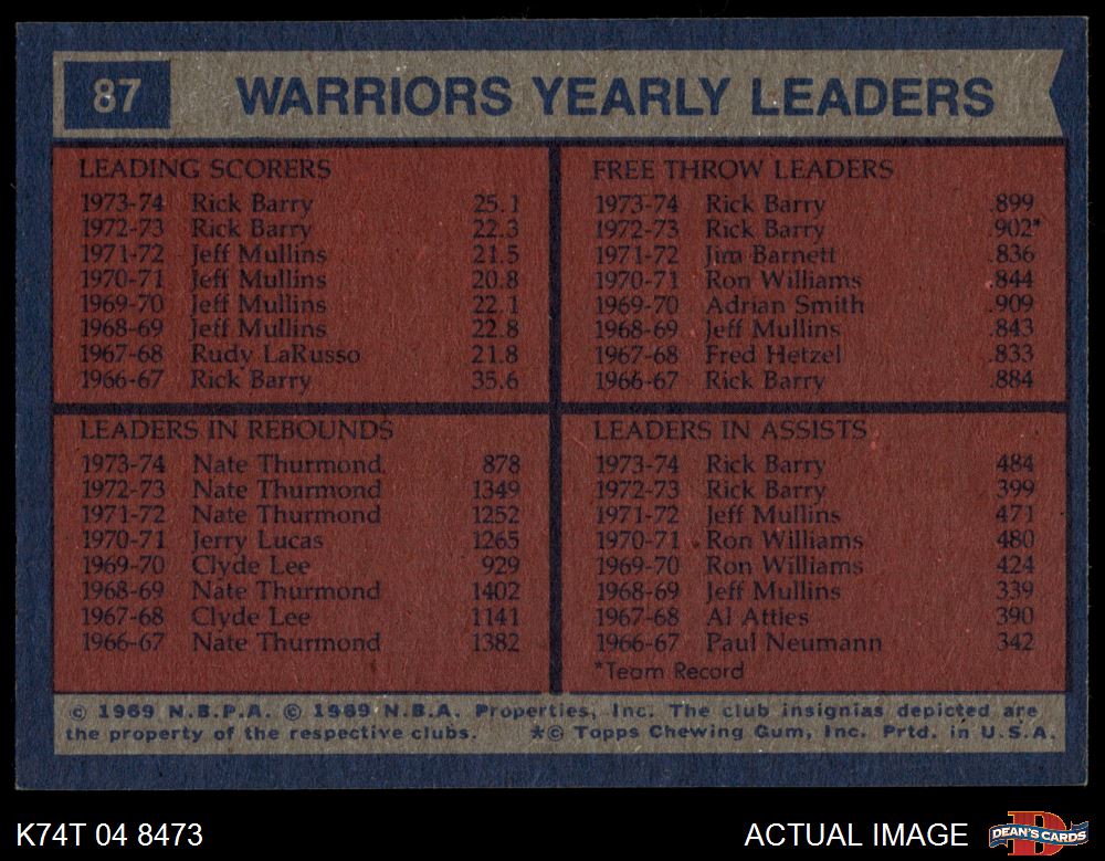 1974 Topps #87 - Rick Barry / Nate Thurmond Warriors Leaders 6 - EX/MT