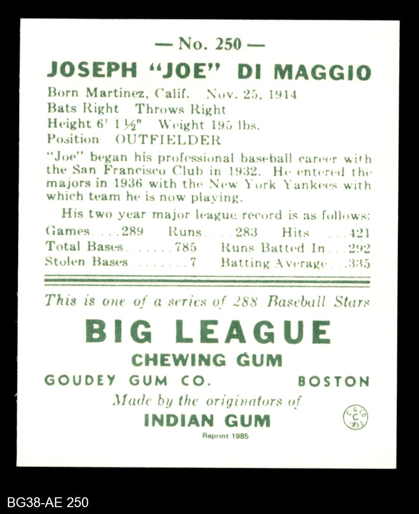 1938 Goudey Heads-Up Reprint #250 Joe DiMaggio 8 - NM/MT