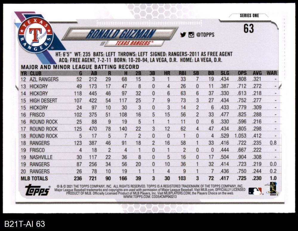 2021 Topps #63 Ronald Guzman 8 - NM/MT