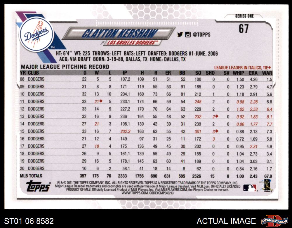 2021 Topps #67 Clayton Kershaw 8 - NM/MT