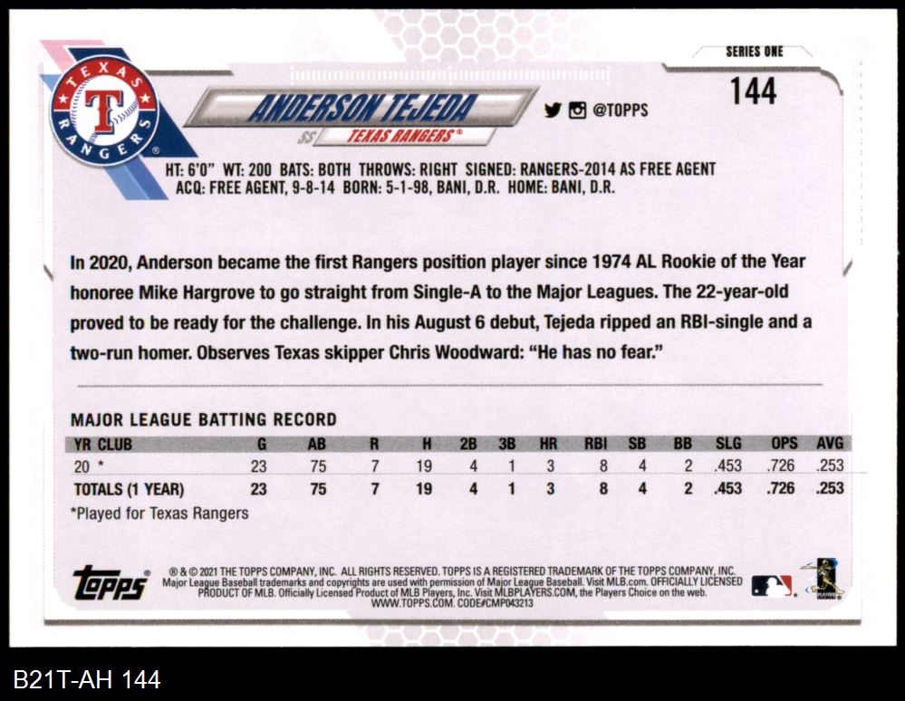 2021 Topps Baseball Cards (4,240 available)2021 Topps Rangers (257 available)