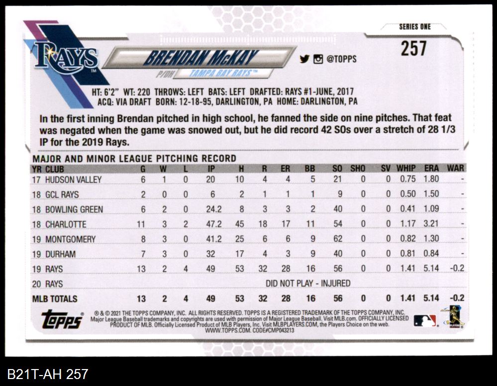 2021 Topps #257 - Brendan McKay Future Stars 8 - NM/MT