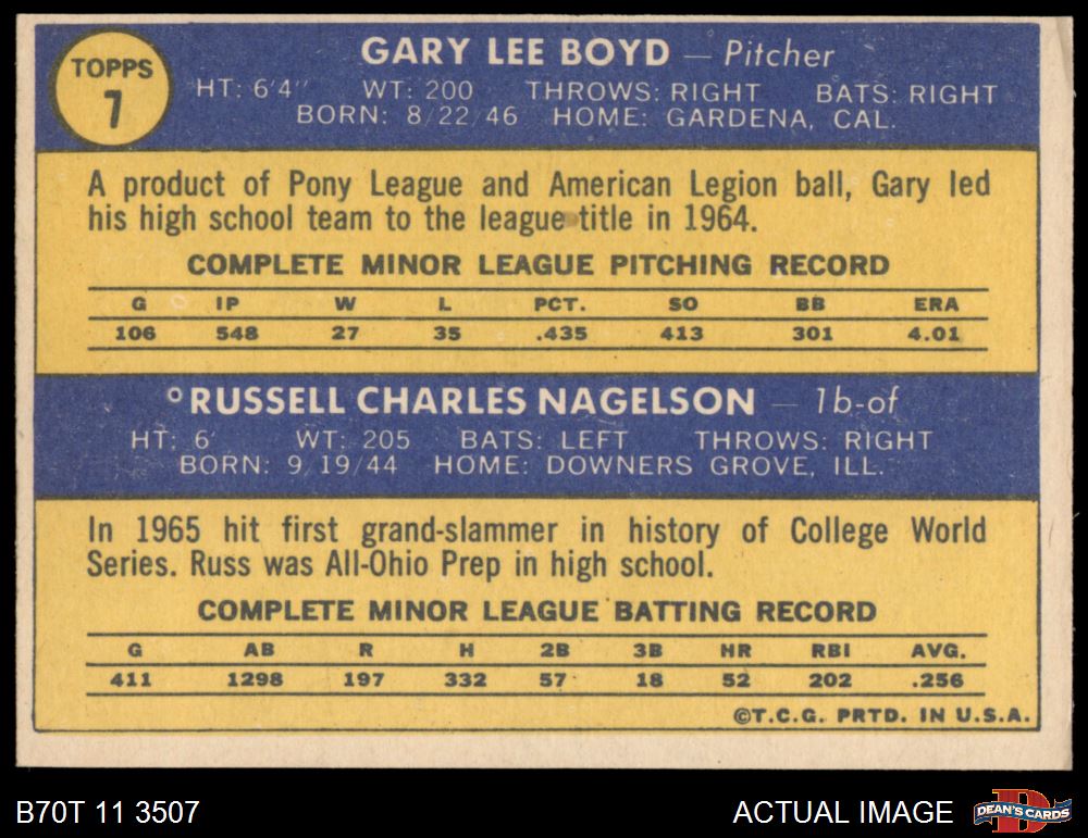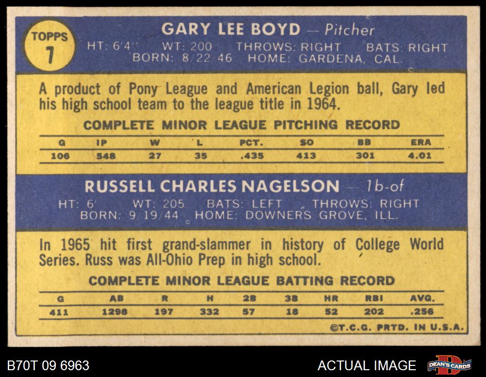 1970 Topps #7 - Gary Boyd / Russ Nagelson Indians Rookies 6 - EX/MT