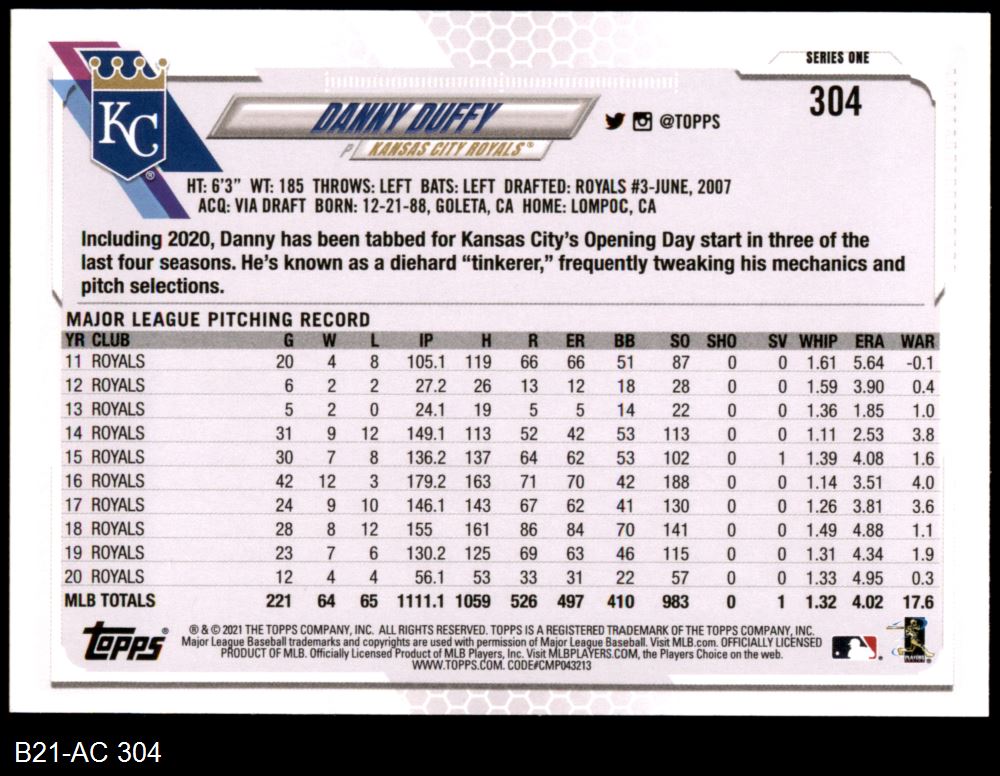 2021 Topps #304 Danny Duffy