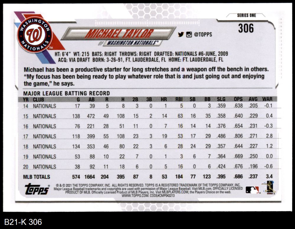 2021 Topps #306 Michael Taylor 8 - NM/MT