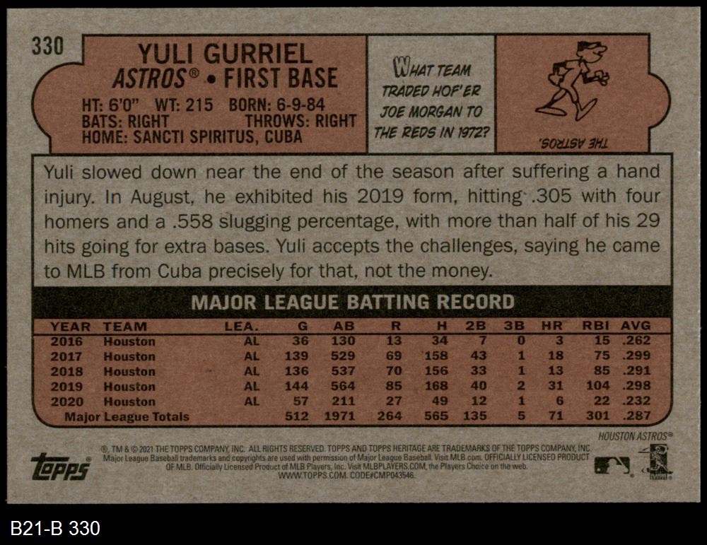 2021 Topps Heritage #330 Yuli Gurriel 8 - NM/MT