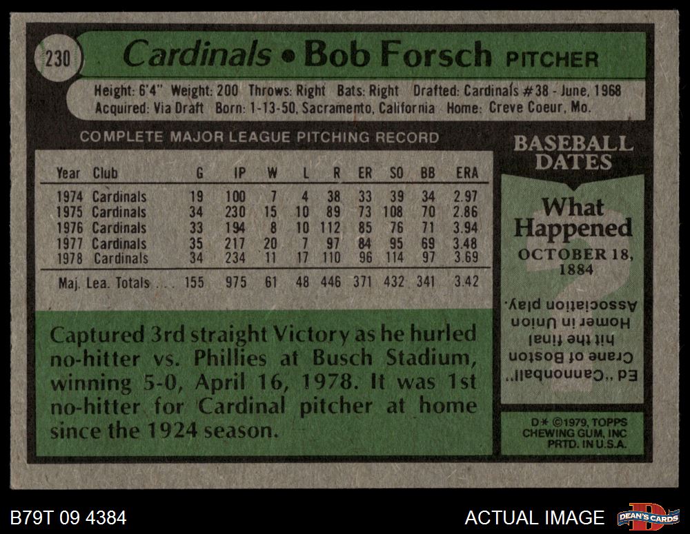 1979 Topps #230 Bob Forsch 5 - EX