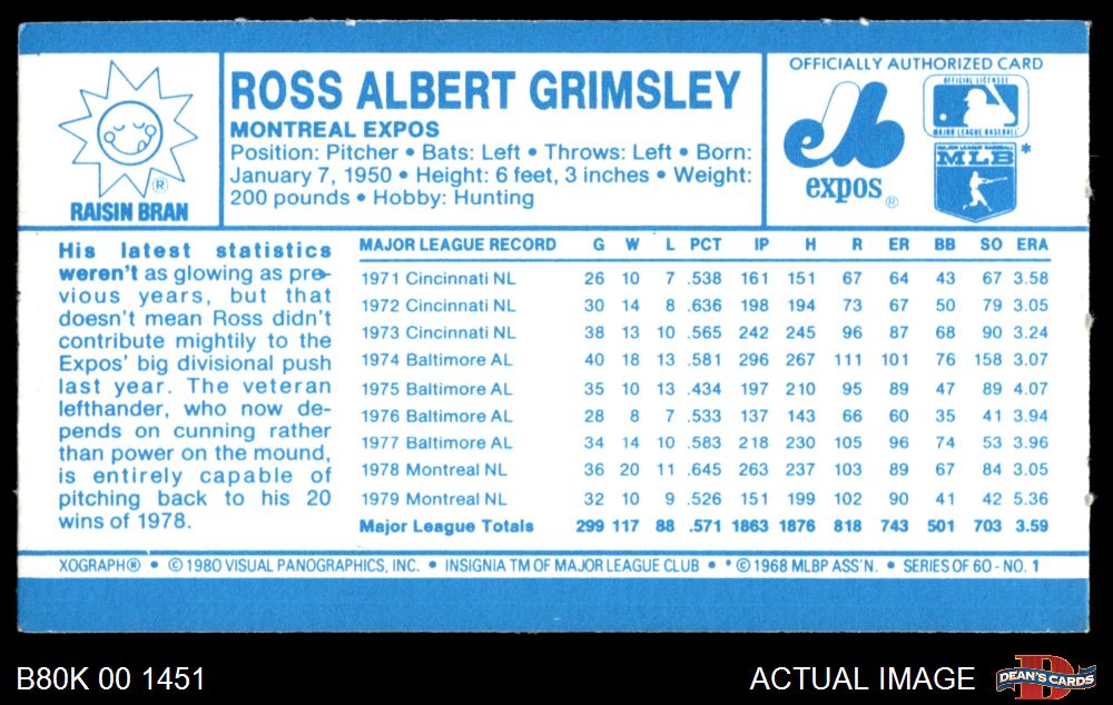 1980 Kelloggs Baseball (779 available)1980 Kelloggs Expos (41 available)