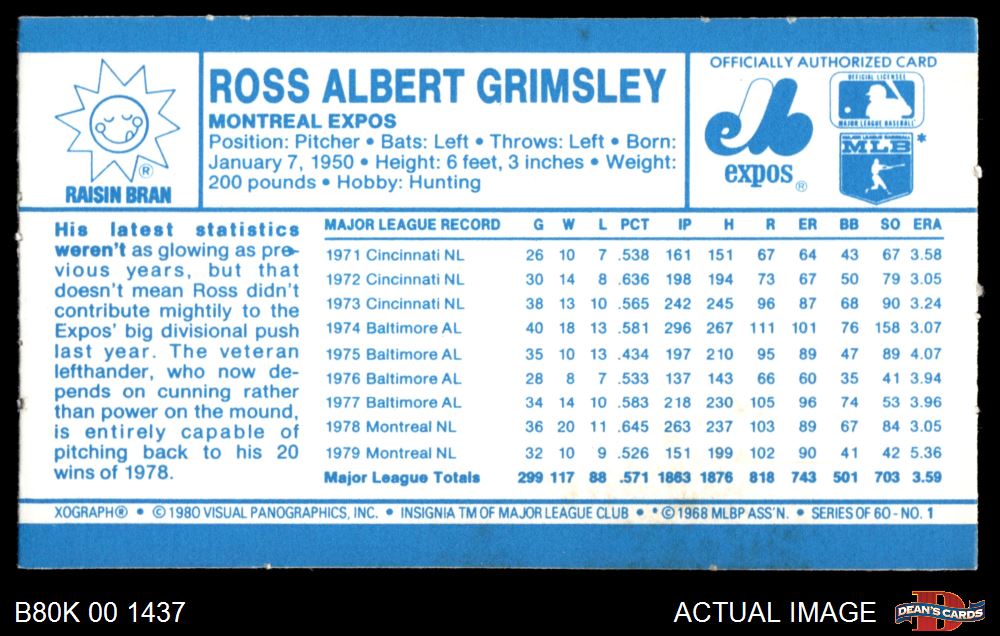 1980 Kelloggs #1 Ross Grimsley 7 - NM