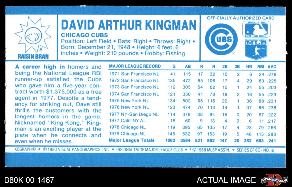 1980 Kelloggs Baseball (779 available)1980 Kelloggs Cubs (21 available)