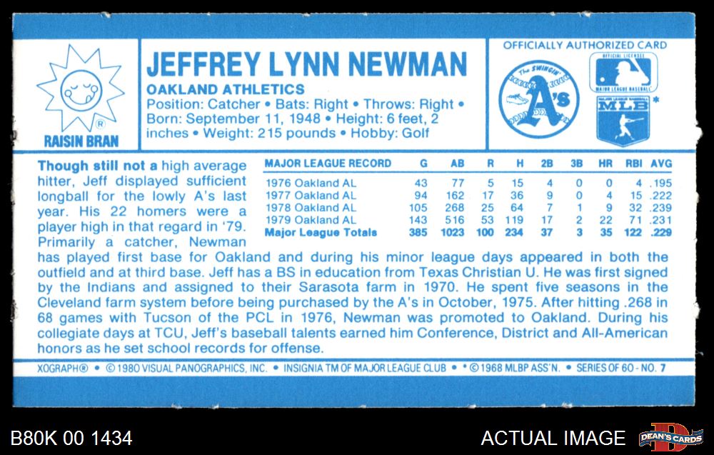 1980 Kelloggs #7 Jeff Newman 7 - NM