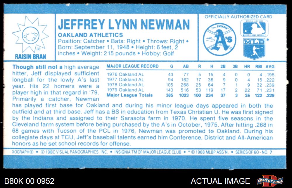 1980 Kelloggs #7 Jeff Newman 8 - NM/MT