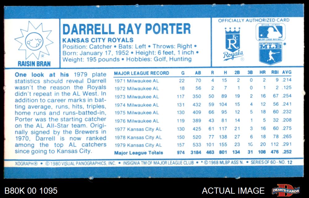 1980 Kelloggs #12 Darrell Porter 8 - NM/MT