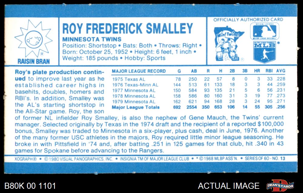 1980 Kelloggs #13 Roy Smalley 8 - NM/MT