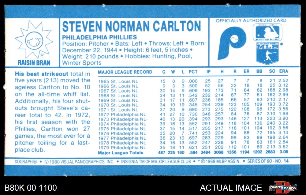 1980 Kelloggs #14 Steve Carlton 8 - NM/MT