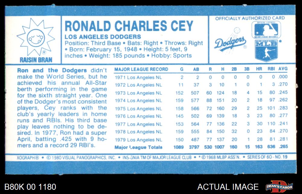 1980 Kelloggs #19 Ron Cey 8 - NM/MT