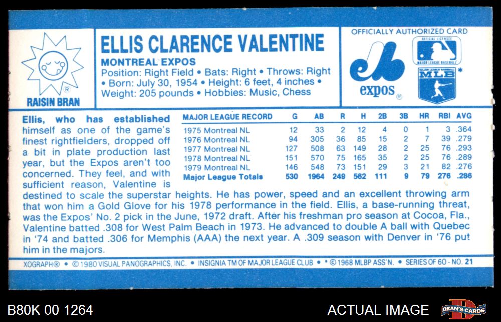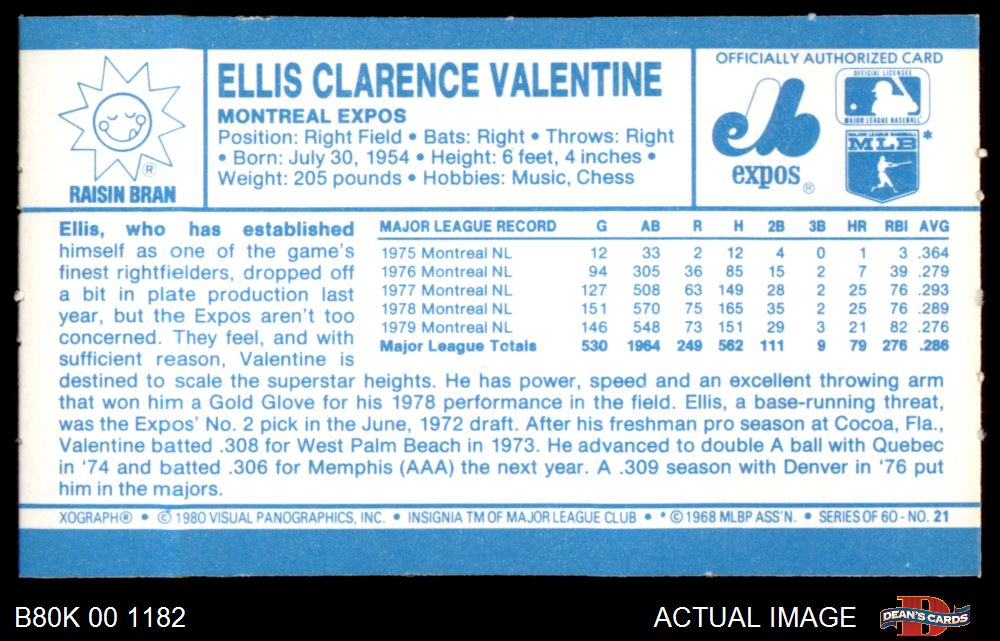 1980 Kelloggs #21 Ellis Valentine 8 - NM/MT