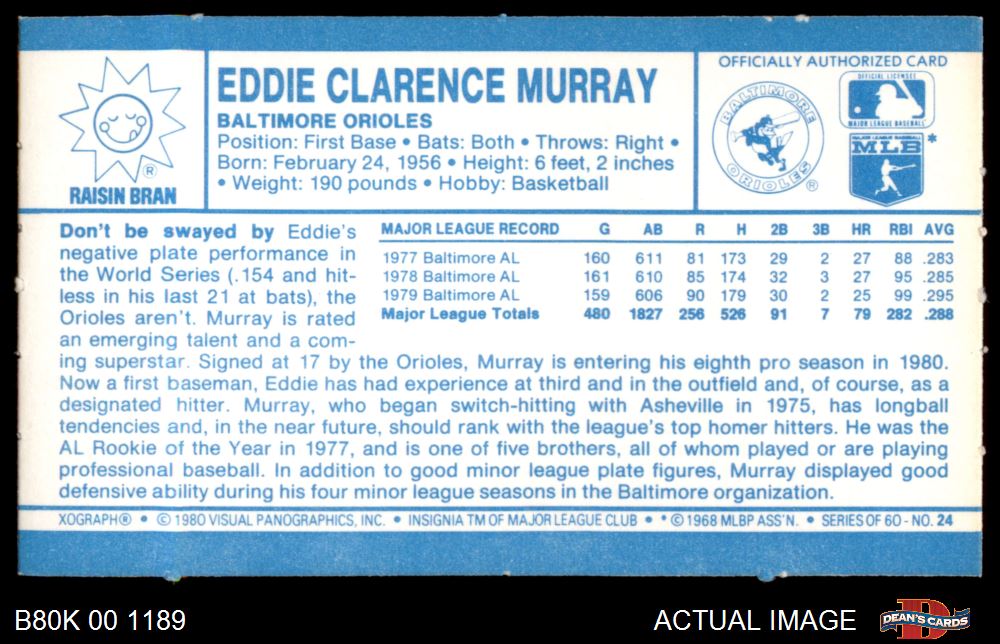 1980 Kelloggs Baseball Cards (777 available)1980 Kelloggs Orioles (59 available)