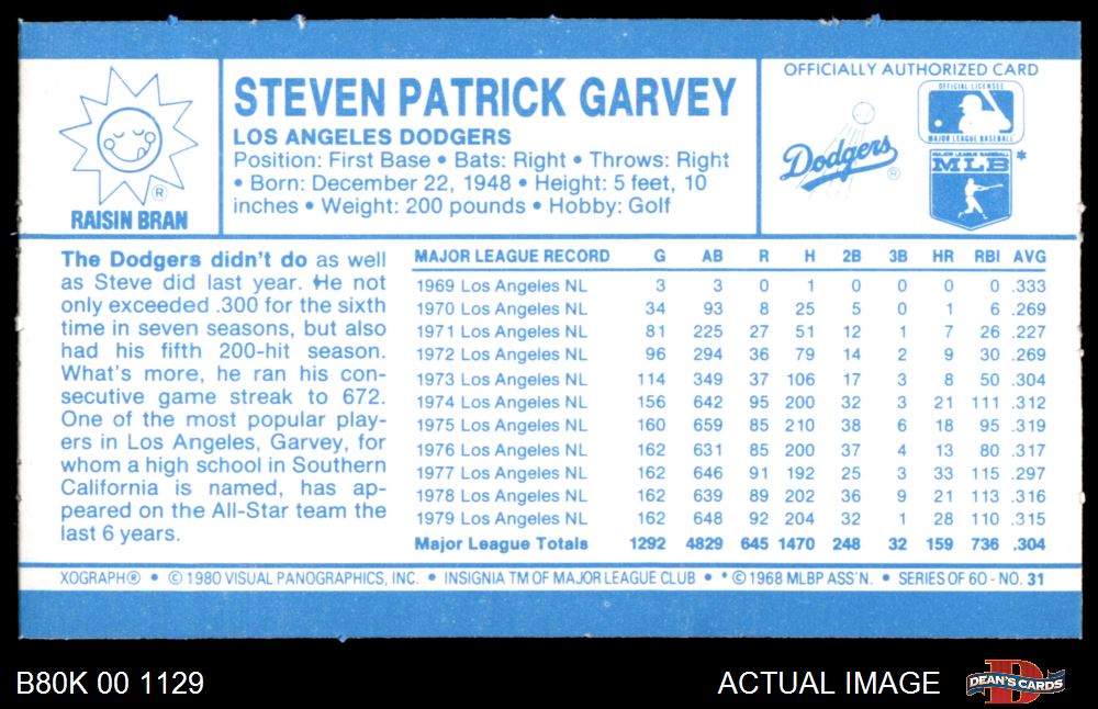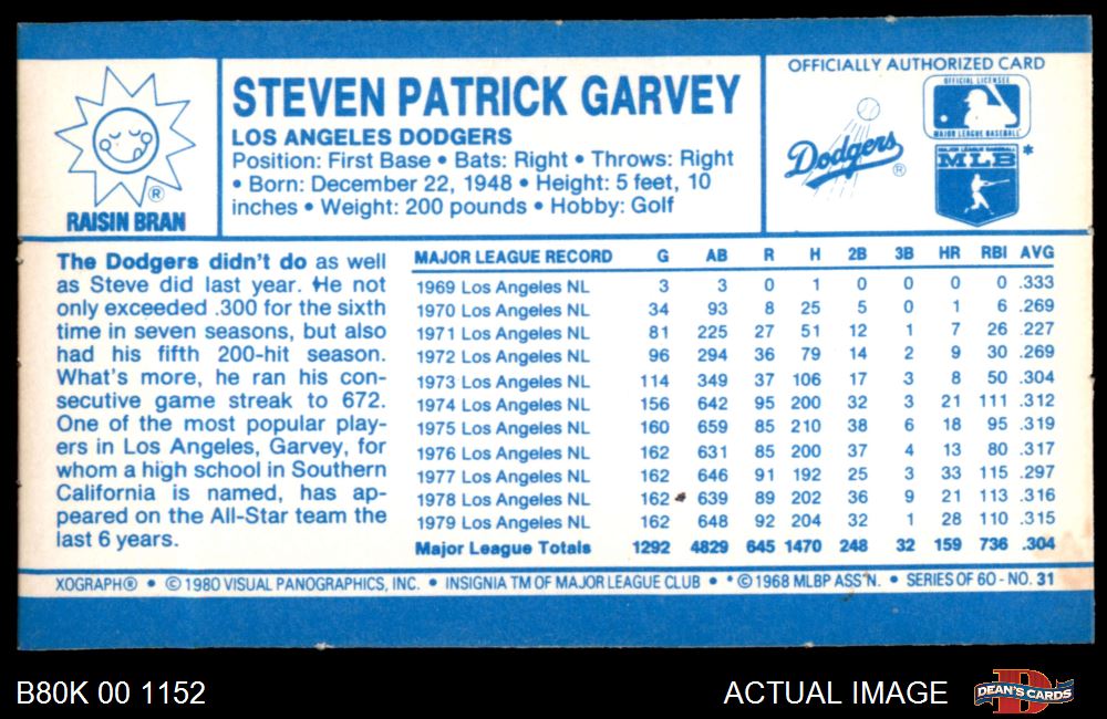 1980 Kelloggs #31 Steve Garvey 8 - NM/MT