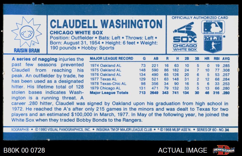 1980 Kelloggs #34 Claudell Washington 8 - NM/MT