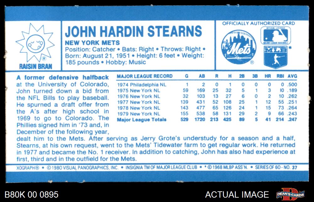 1980 Kelloggs #37 John Stearns 8 - NM/MT
