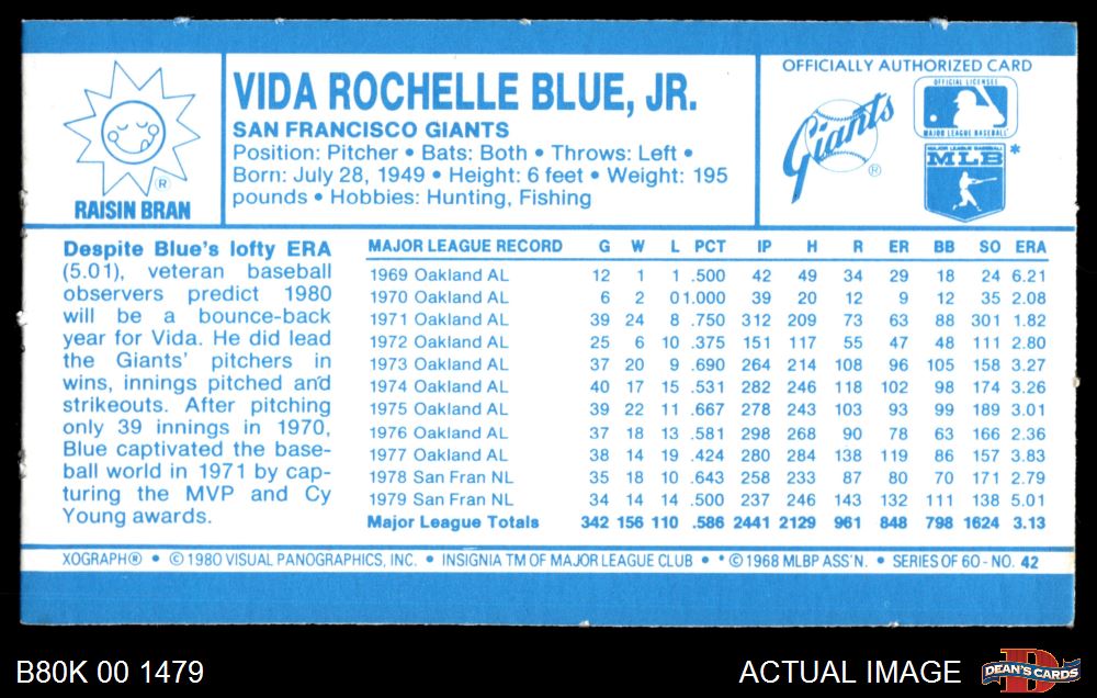 1980 Kelloggs #42 Vida Blue