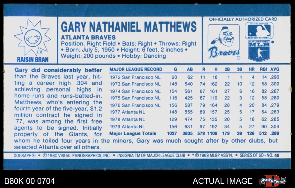 1980 Kelloggs Baseball Cards (775 available)1980 Kelloggs Braves (30 available)