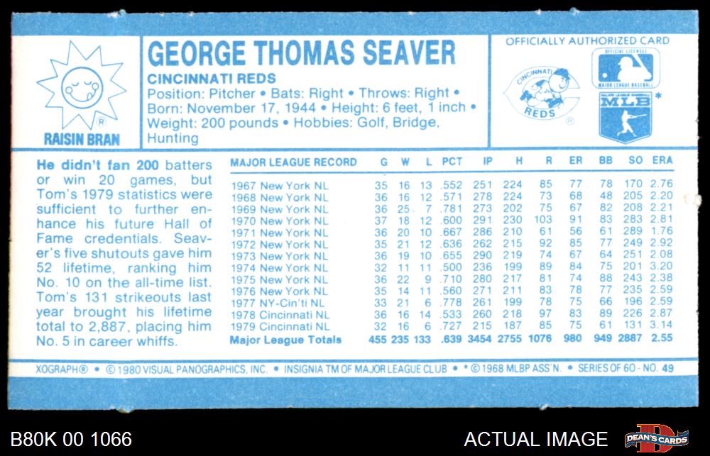 1980 Kelloggs Baseball Cards (775 available)1980 Kelloggs Reds (31 available)
