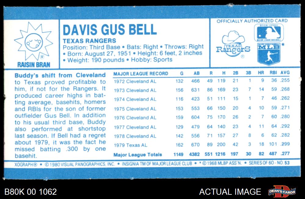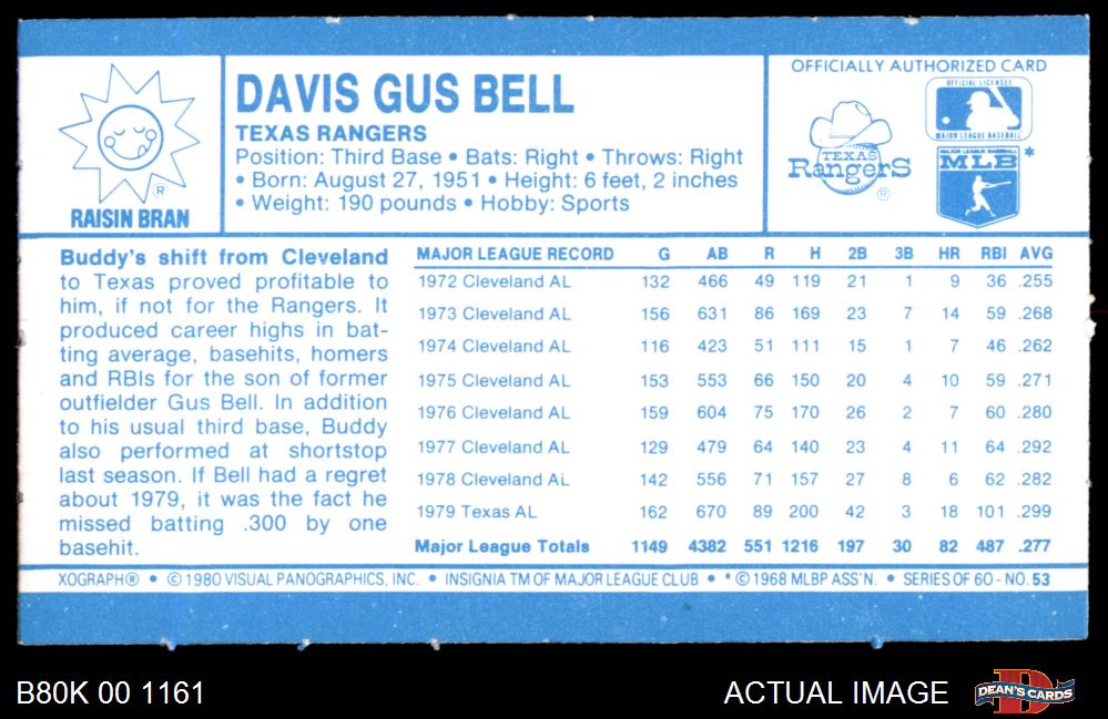 1980 Kelloggs #53 Buddy Bell 8 - NM/MT