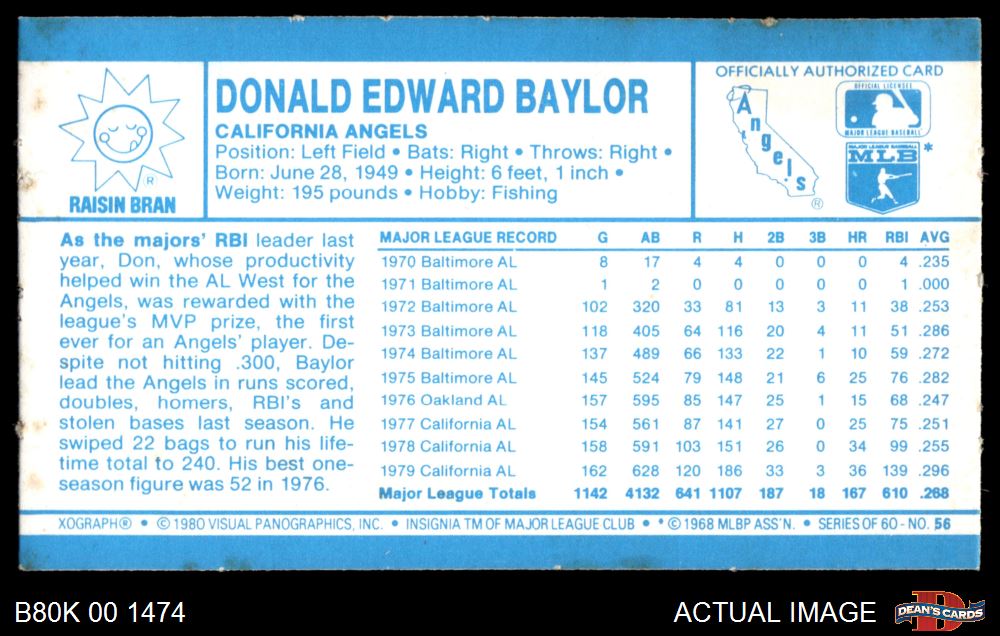 1980 Kelloggs #56 Don Baylor 6.5 - EX/MT+
