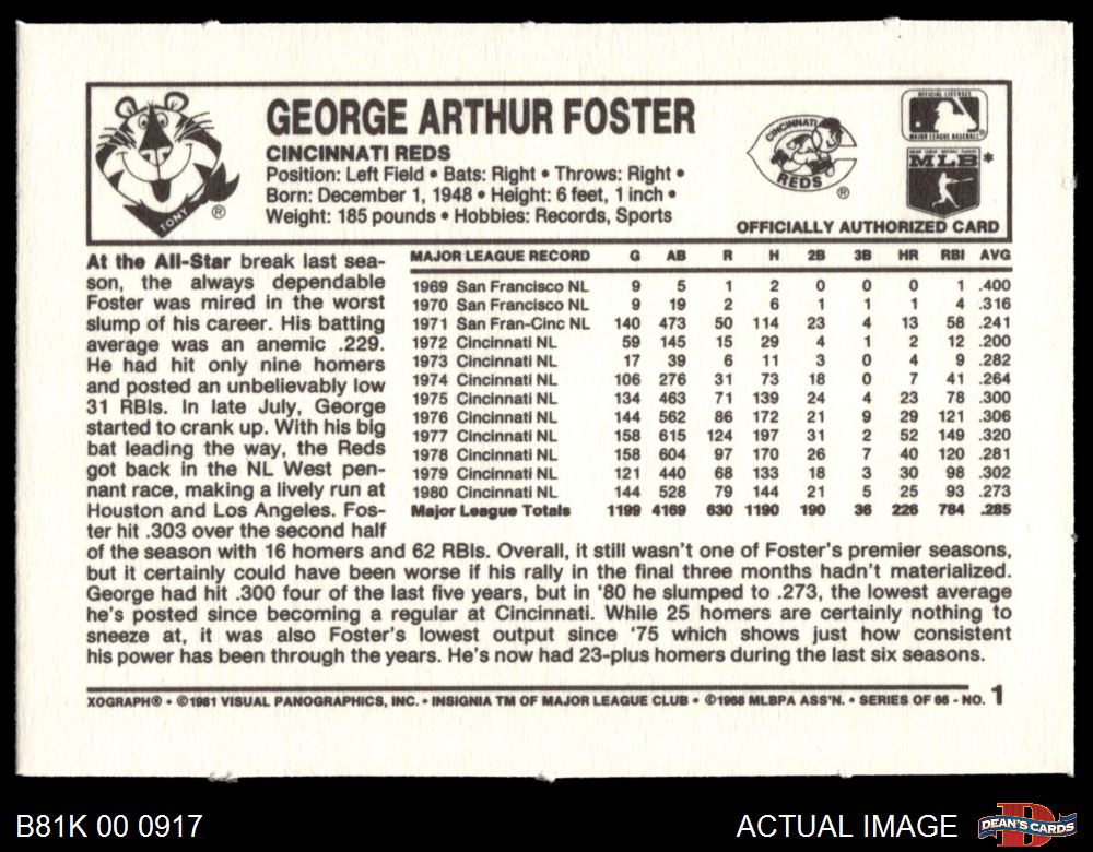1981 Kelloggs #1 George Foster 6 - EX/MT
