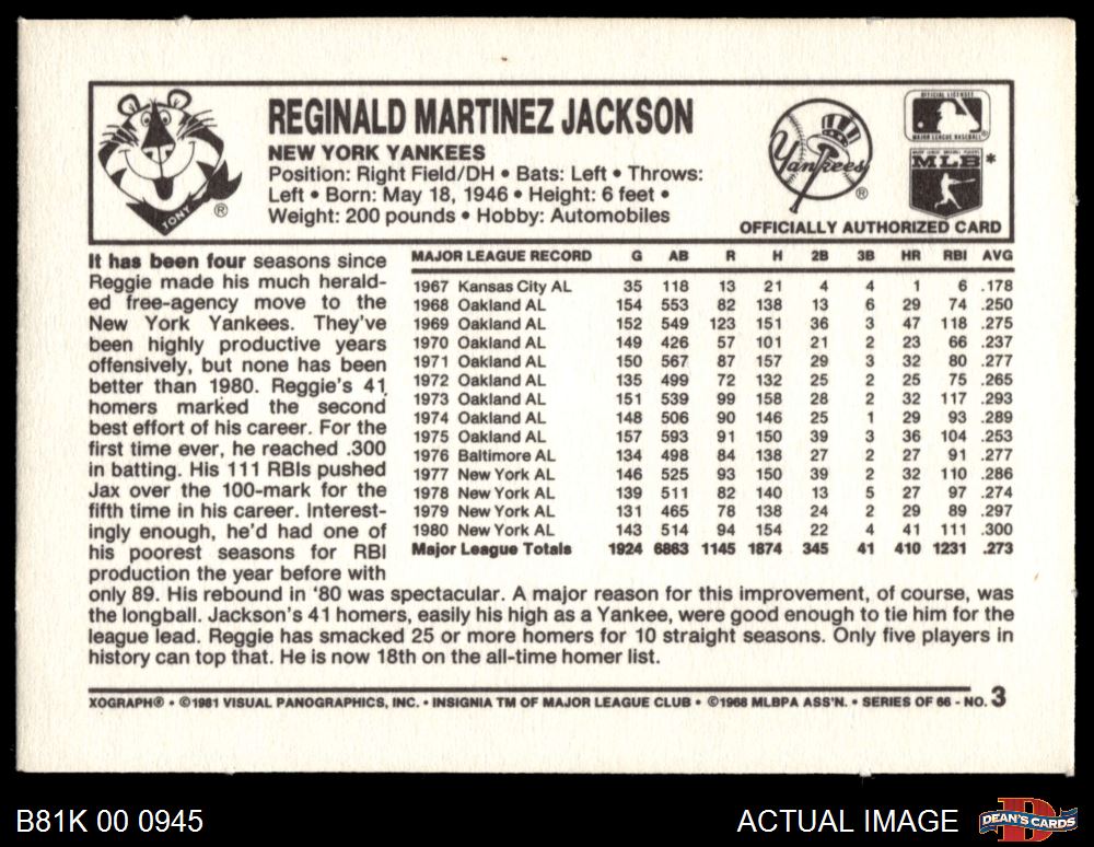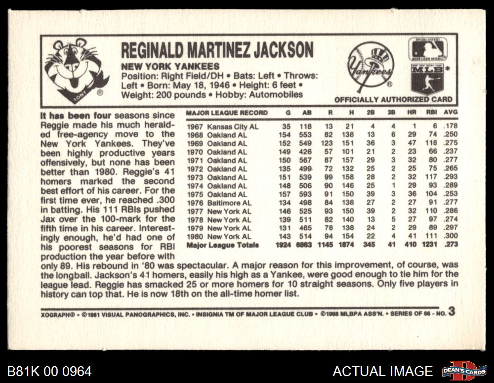 1981 Kelloggs #3 Reggie Jackson 6 - EX/MT