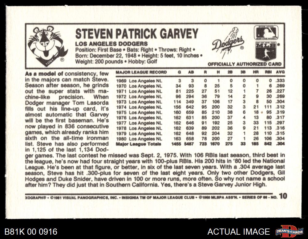1981 Kelloggs #10 Steve Garvey