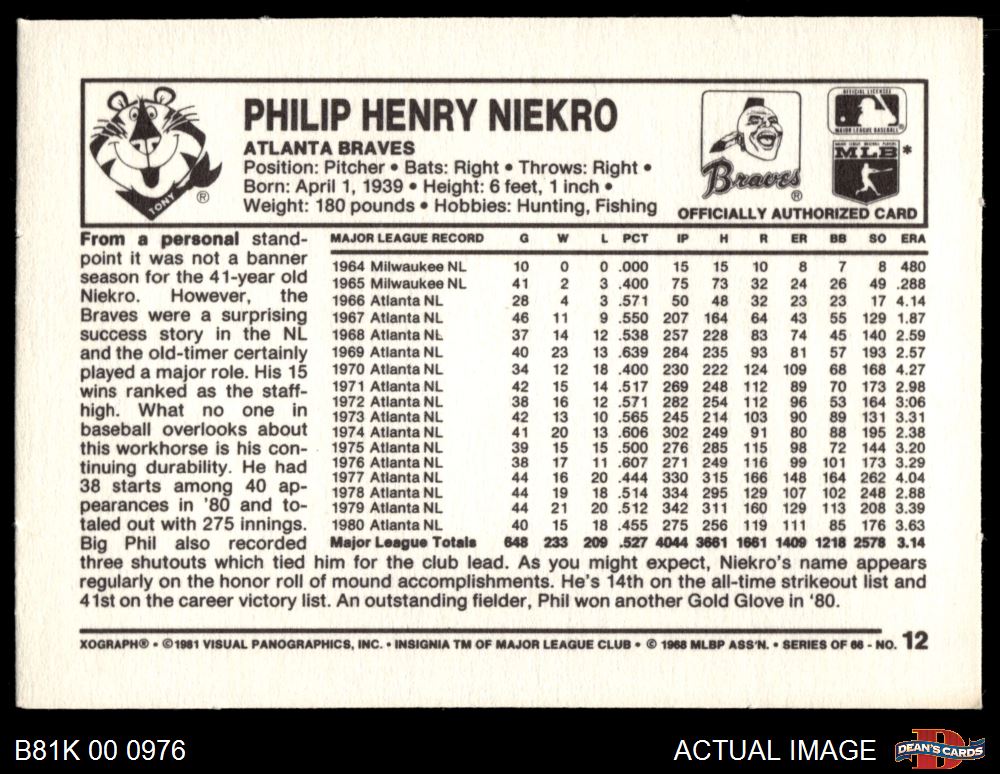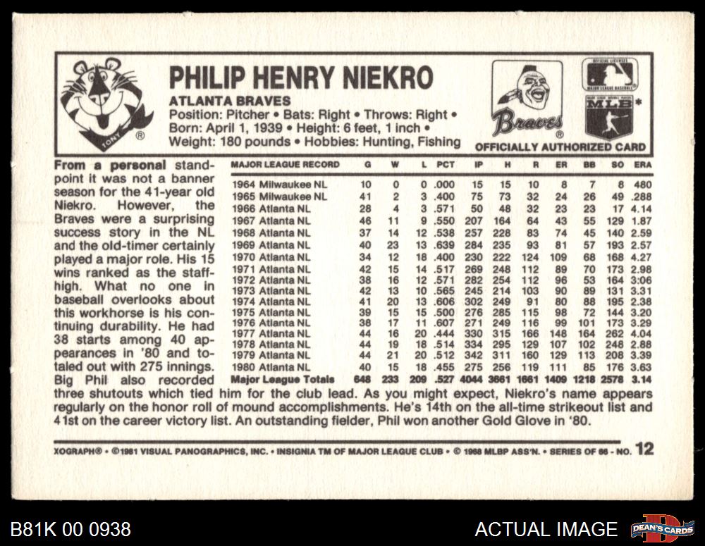 1981 Kelloggs #12 Phil Niekro 6.5 - EX/MT+