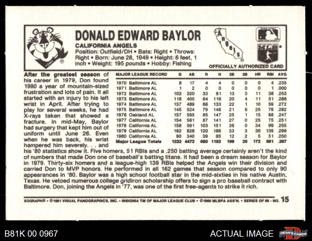 1981 Kelloggs #15 Don Baylor 7.5 - NM+