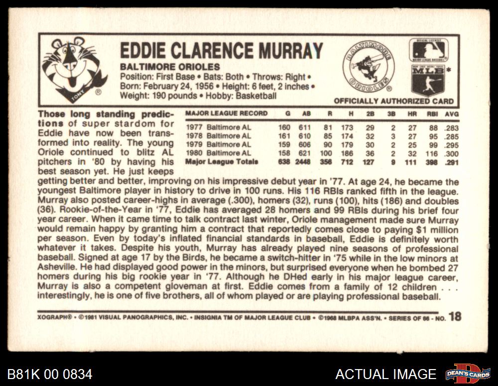 1981 Kelloggs #18 Eddie Murray 5 - EX